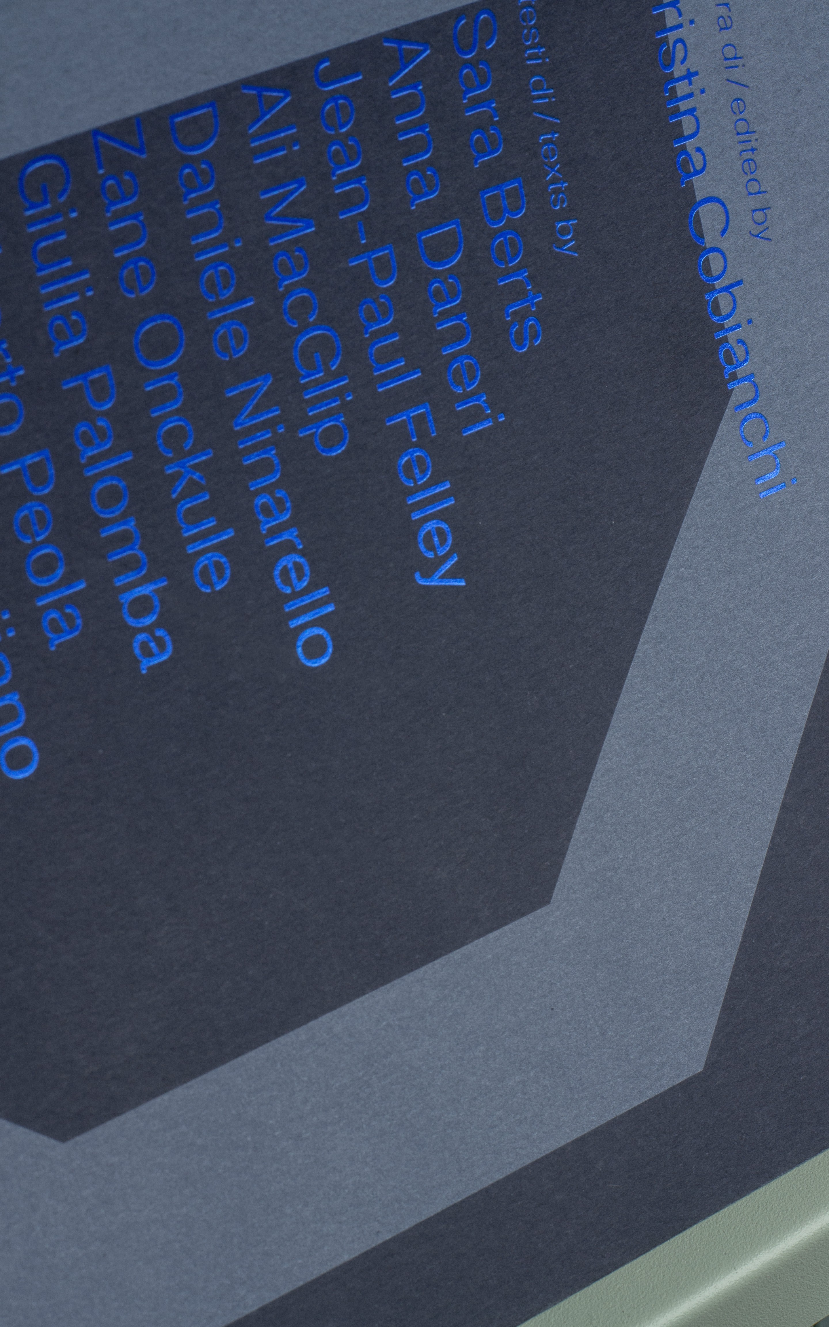 In copertina una serigrafia bianca diventa azzurra a contatto con la carta materica blu notte e una laminazione hot foil fa risaltare le informazioni tecniche.