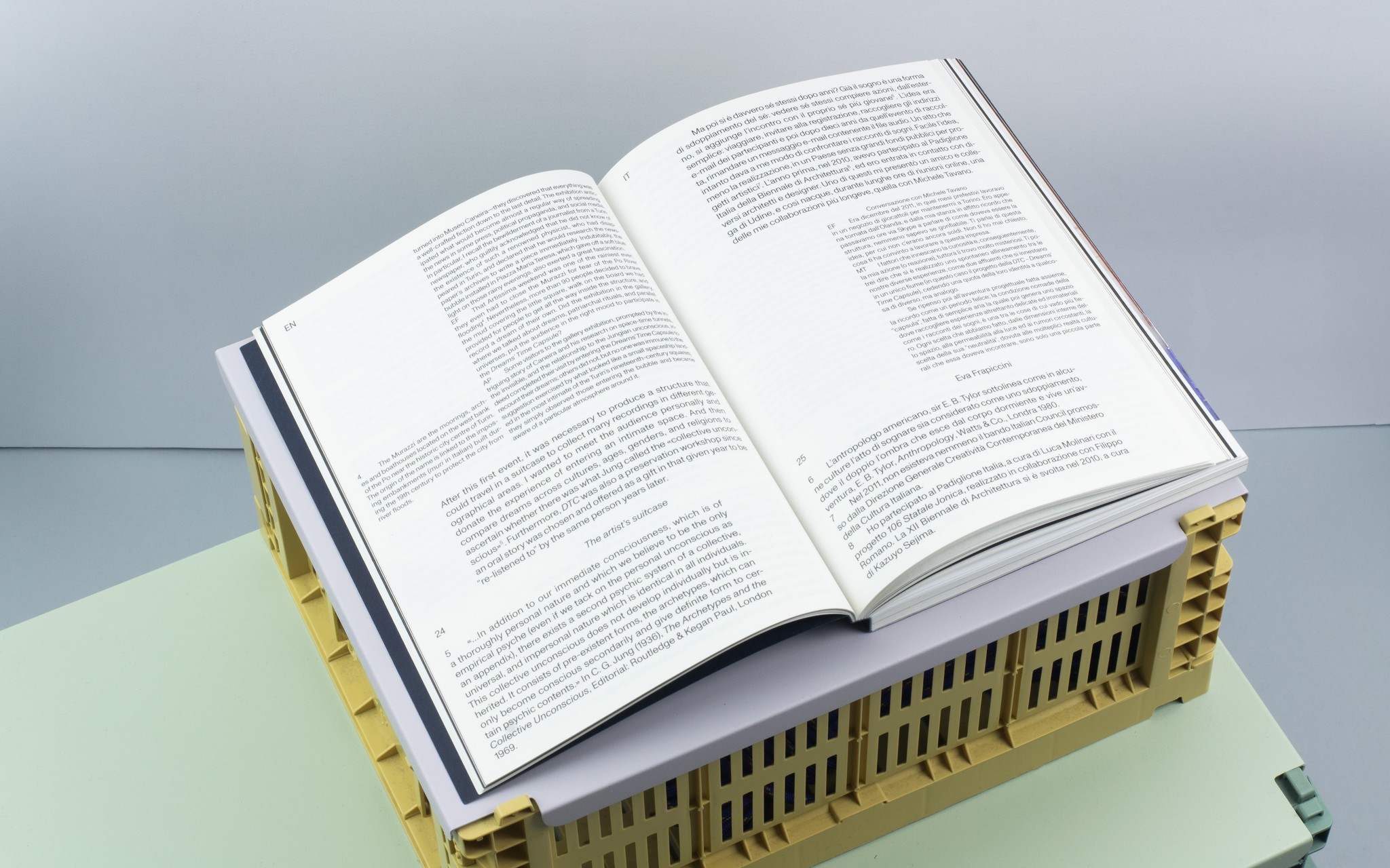 La pubblicazione Dreams’ Archive di Eva Frapiccini, testimonia i tre progetti dell’artista e la partecipazione di Dreamscape alla prima edizione della Biennale Son, curata da Christophe Fellay, Jean-Paul Felley, Luc Meier e Sylvie Zavatta. Il testo è diviso in due sezioni che si leggono in due sensi opposti.